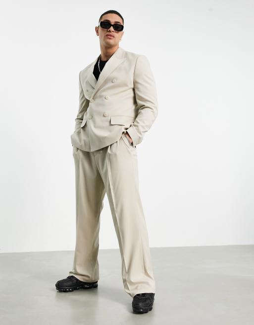 Veste Costume Beige: Ensemble costume complet deux pièces, blazer laine veste costume et le pantalon habillé coupe ajustée.